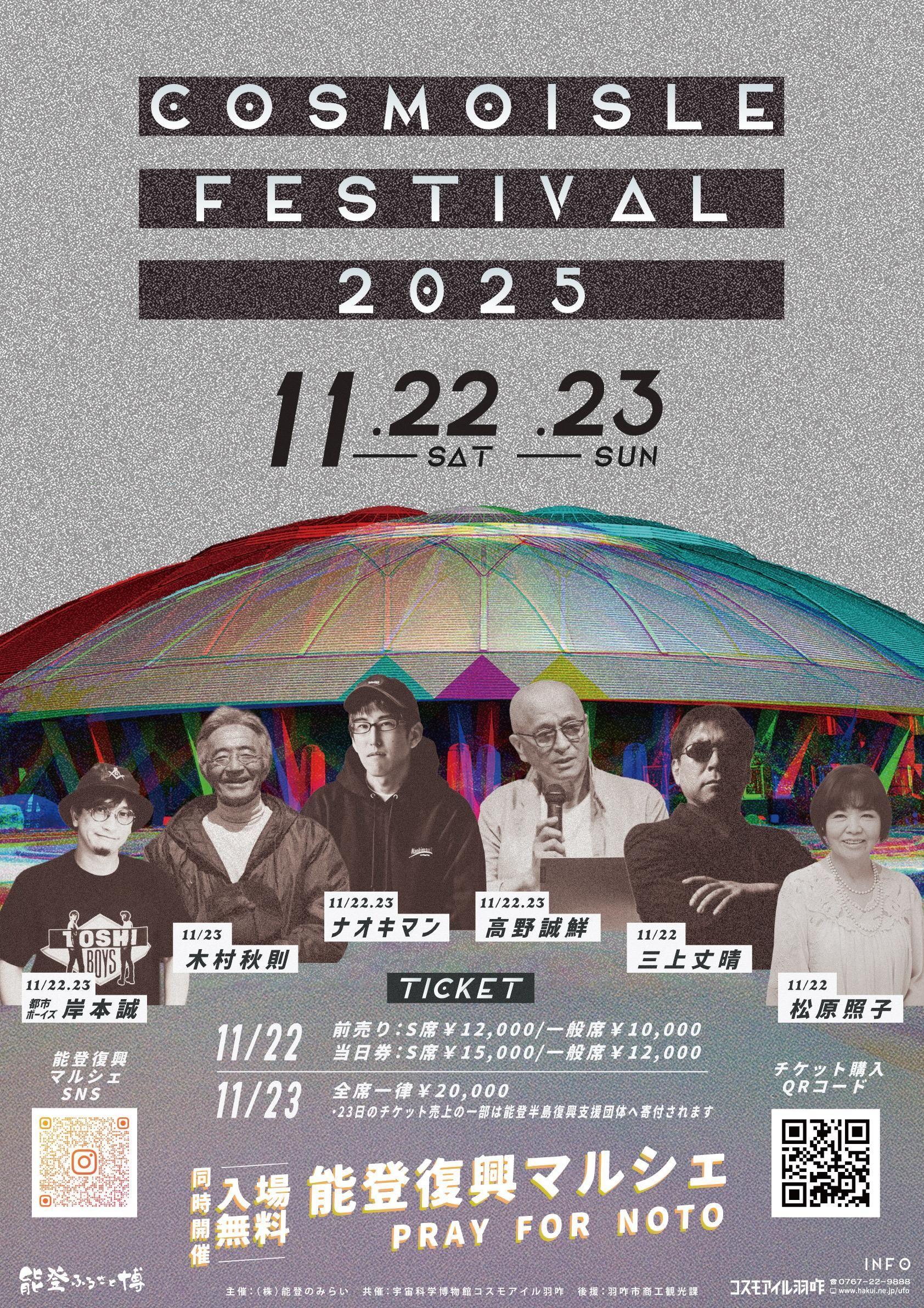 会場 宇宙博物館 コスモアイル羽咋 ユーフォニーホール(大ホール) 参加費 S席エリア 自由席 12000円 A席エリア 自由席 10000円